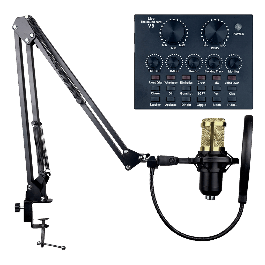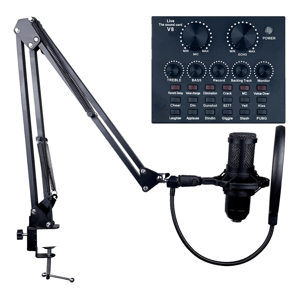 Bring your livestreams, voice chats, and home recordings together with one clean desk setup. This Condenser Microphone Streaming Kit pairs a uni-directional condenser microphone with the V8 Live Sound Card so you can control your mic level, add echo, and shape your sound without juggling extra gear. It's a practical upgrade for creators who want a more "put-together" audio presence for streaming, gaming, karaoke apps, and everyday content.