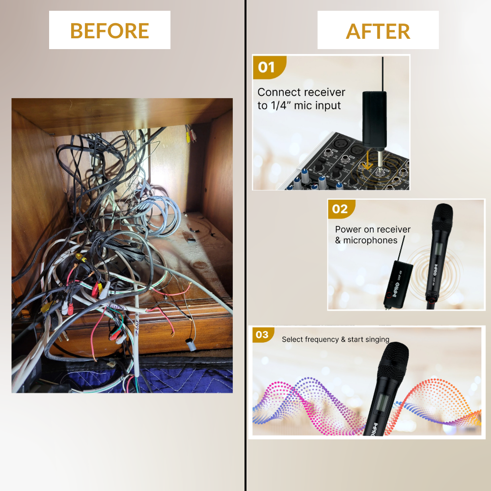 Bring the energy without the cable clutter. The ImPro UHF-89 is a dual handheld UHF wireless microphone set made for karaoke nights, parties, meetings, and small events-with simple channel selection, on-mic volume controls, and a compact plug-in receiver that keeps setup quick and clean.